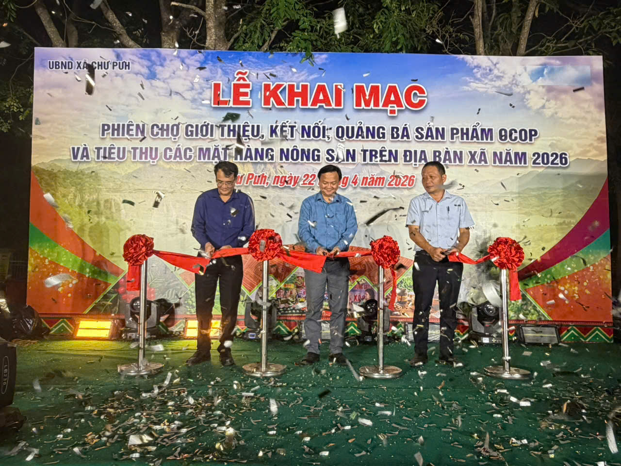Tối ngày 22/04/2026, tại Quảng trường xã, UBND xã Chư Pưh đã tổ chức khai mạc phiên chợ giới thiệu, kết nối quảng bá sản phẩm Ocop và tiêu thụ các mặt hàng nông sản trên địa bàn xã năm 2026. Về dự, có các đồng chí: Nguyễn Huy Châu-Bí thư Đảng ủy, Chủ tịch HĐND xã; Nguyễn Văn Hạ-UVBTVĐU-Phó Chủ tịch HĐND xã; Trần Đức Hậu-UVBTVĐU, Phó Chủ tịch Thường trực UBND xã; Lê Đình Sơn-UVBTVĐU, Phó Chủ tịch UBND xã; lãnh đạo các phòng, ban chuyên môn và tổ chức chính trị- xã hội trên địa bàn xã cùng đông đảo bà con nhân dân tham gia.