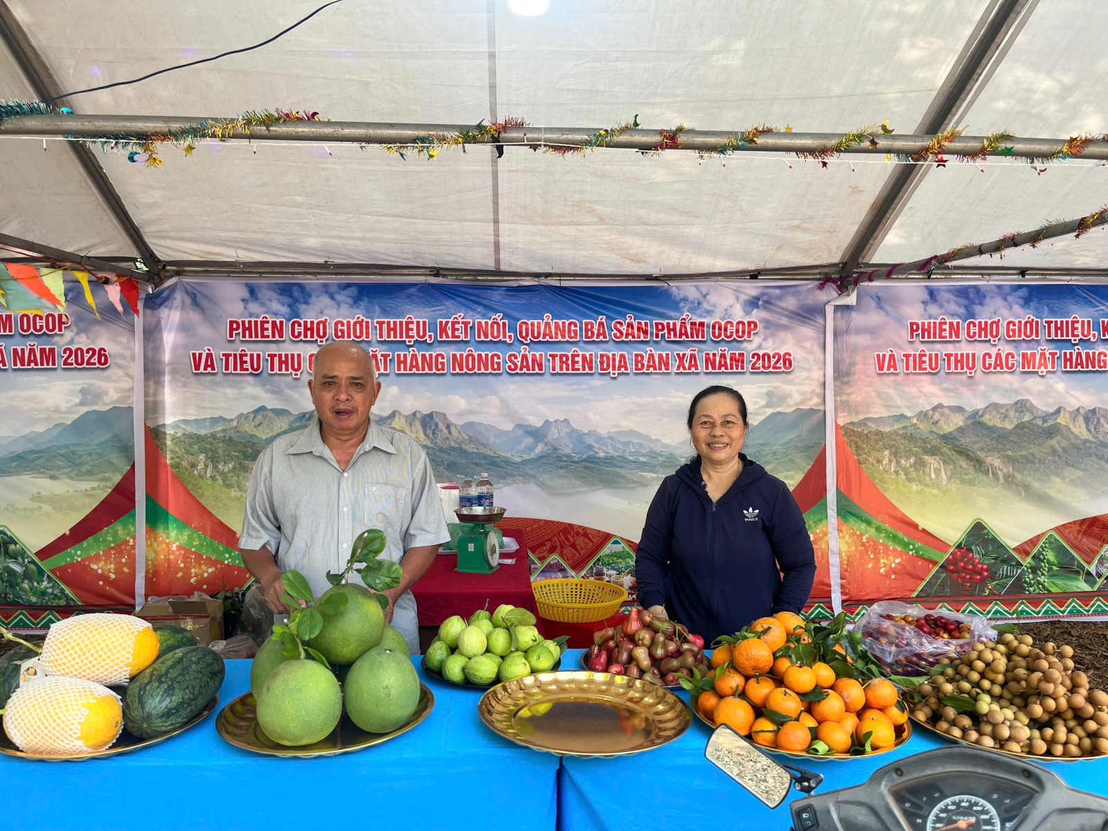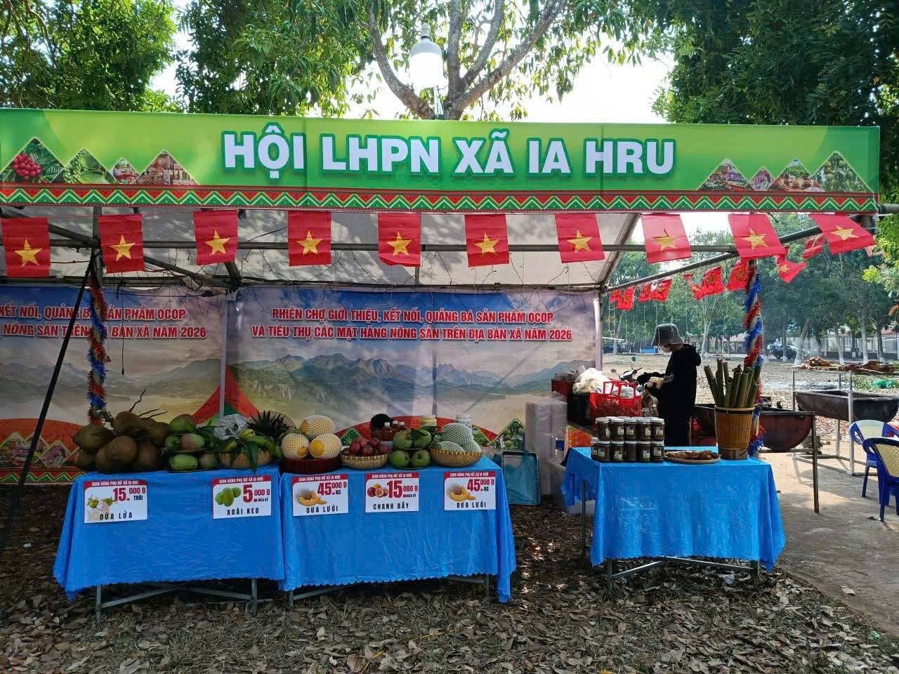 Các mặt hàng nông sản địa phương được bày bán ở các gian hàng