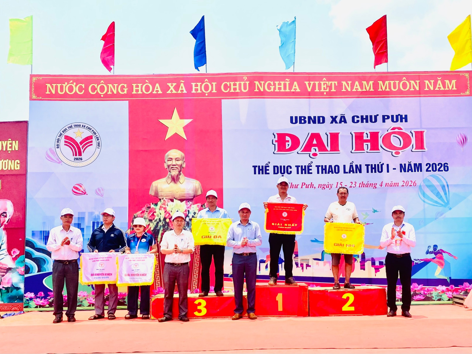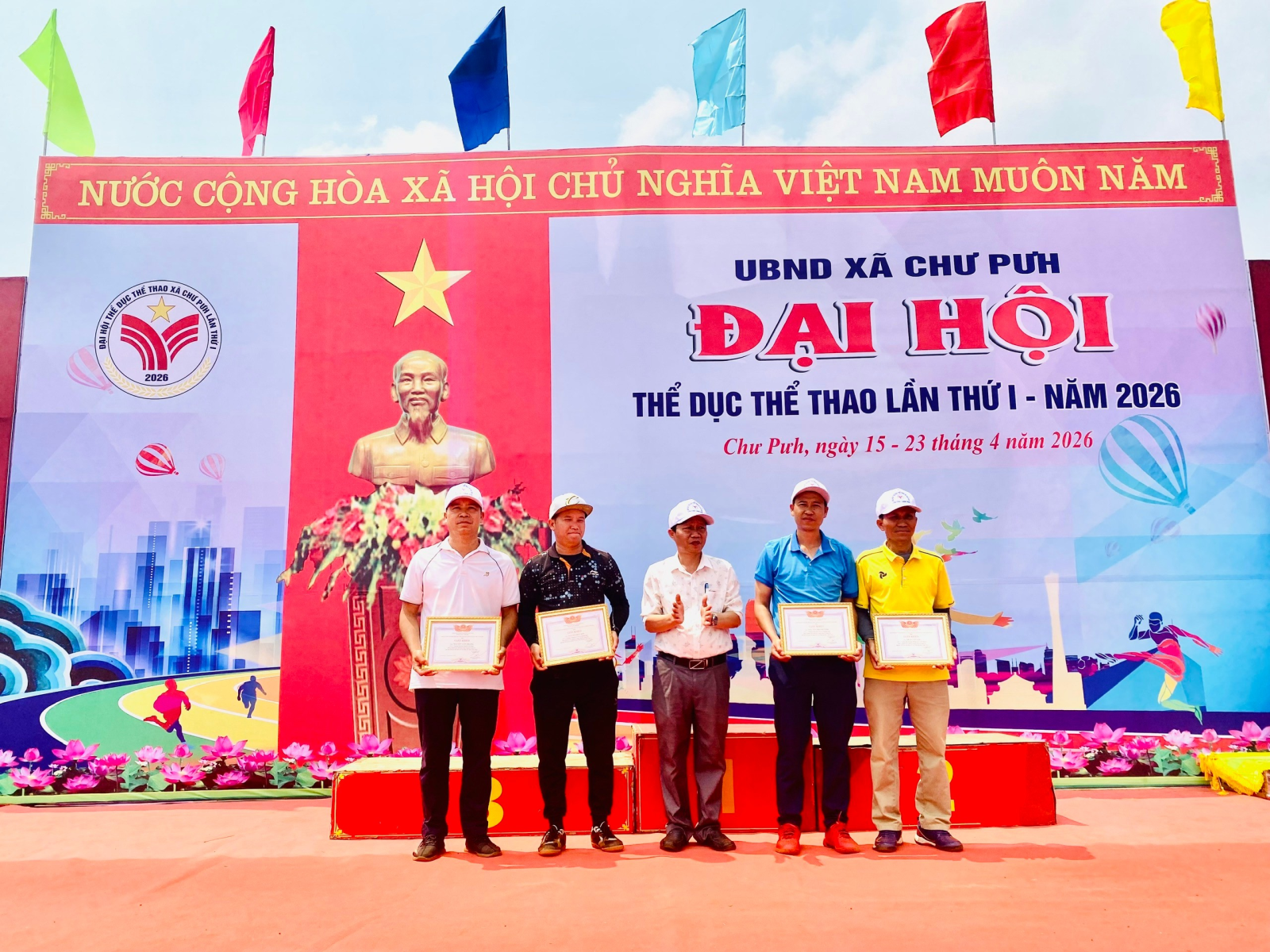 Ban Tổ chức đã trao giấy khen cho các tập thể và cá nhân đạt thành tích cao trong thi đấu tại Đại hội Thể dục thể thao xã Chư Pưh lần thứ I năm 2026