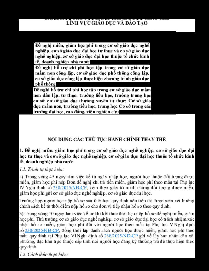DANH MỤC THỦ TỤC HÀNH CHÍNH ĐƯỢC THAY THẾ LĨNH VỰC GIÁO DỤC VÀ ĐÀO TẠO - QĐ 1942 25/11/2025, 10:05:41 - Lượt xem: 0 Tweet Thêm vào danh sách Báo xấu Thông tin tài liệu DANH MỤC THỦ TỤC HÀNH CHÍNH ĐƯỢC THAY THẾ LĨNH VỰC GIÁO DỤC VÀ ĐÀO TẠO - QĐ 1942