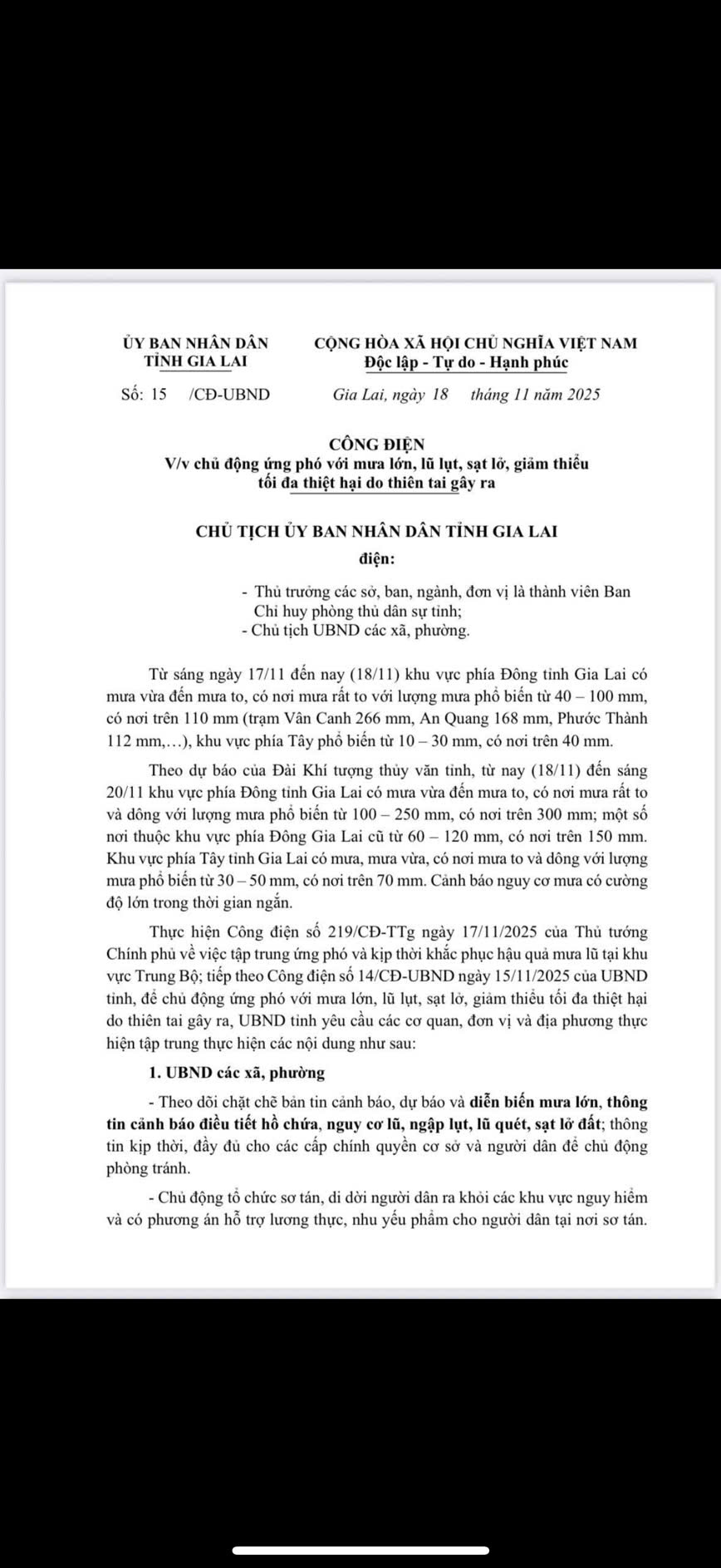 CÔNG ĐIỆN Về việc chủ động ứng phó với mưa lớn, lũ lụt, sạt lở, giảm thiểu tối đa thiệt hại do thiên tai gây ra Ngày đăng: 18/11/2025 2 lượt xem Danh sách file (3 files) Tải về z7236651626506_649e84f355f50909399f29325f2db27a_e408d.jpg Tải về z7236651631094_4baff2ad806000b0a69eab5e6919f9cd_3c623.jpg Tải về z7236651617504_66417b455110851fad3be05d0de53903_b17b9.jpg