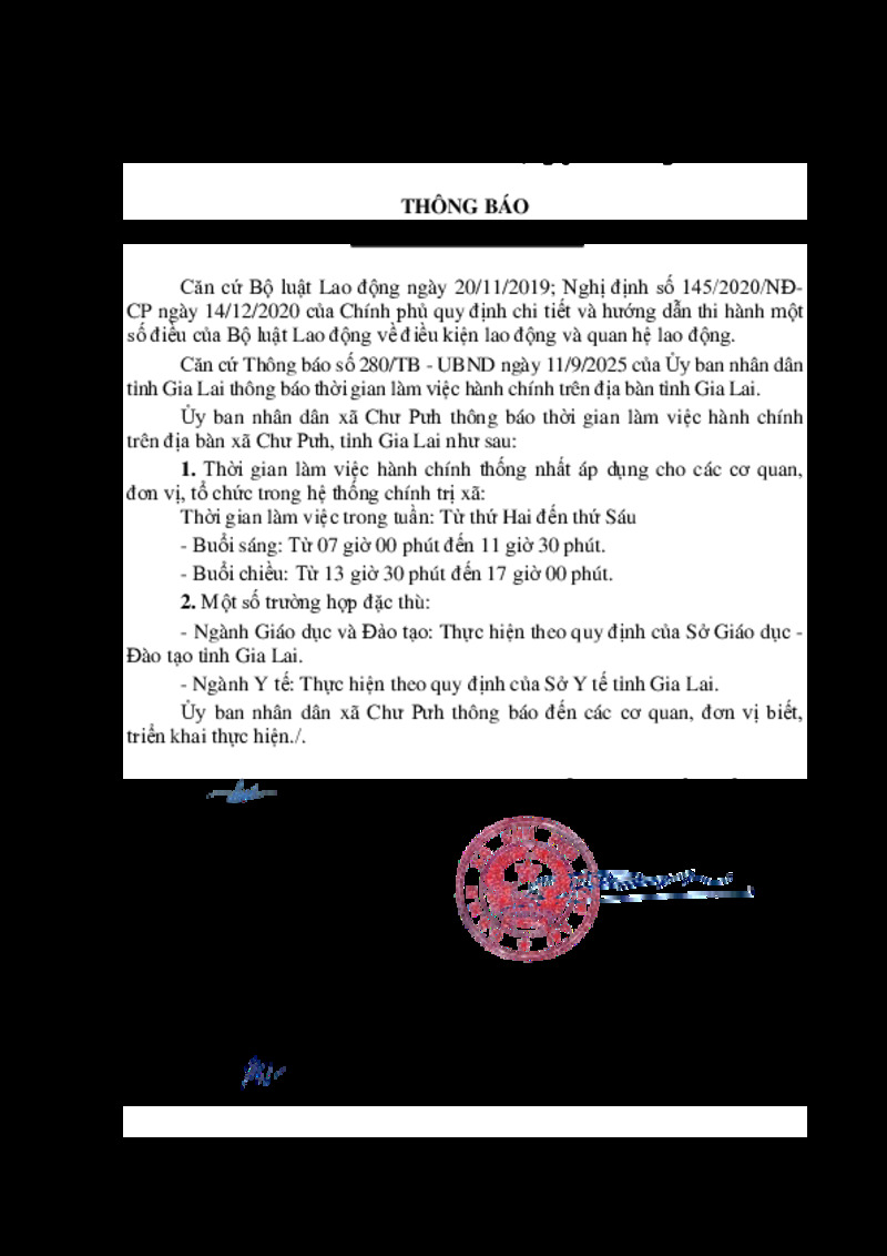 Thông báo thời gian làm việc hành chính trên địa bàn xã Chư Pưh 16/09/2025, 12:05:39 - Lượt xem: 7 Tweet Thêm vào danh sách Báo xấu Thông tin tài liệu Thông báo thời gian làm việc hành chính trên địa bàn xã Chư Pưh