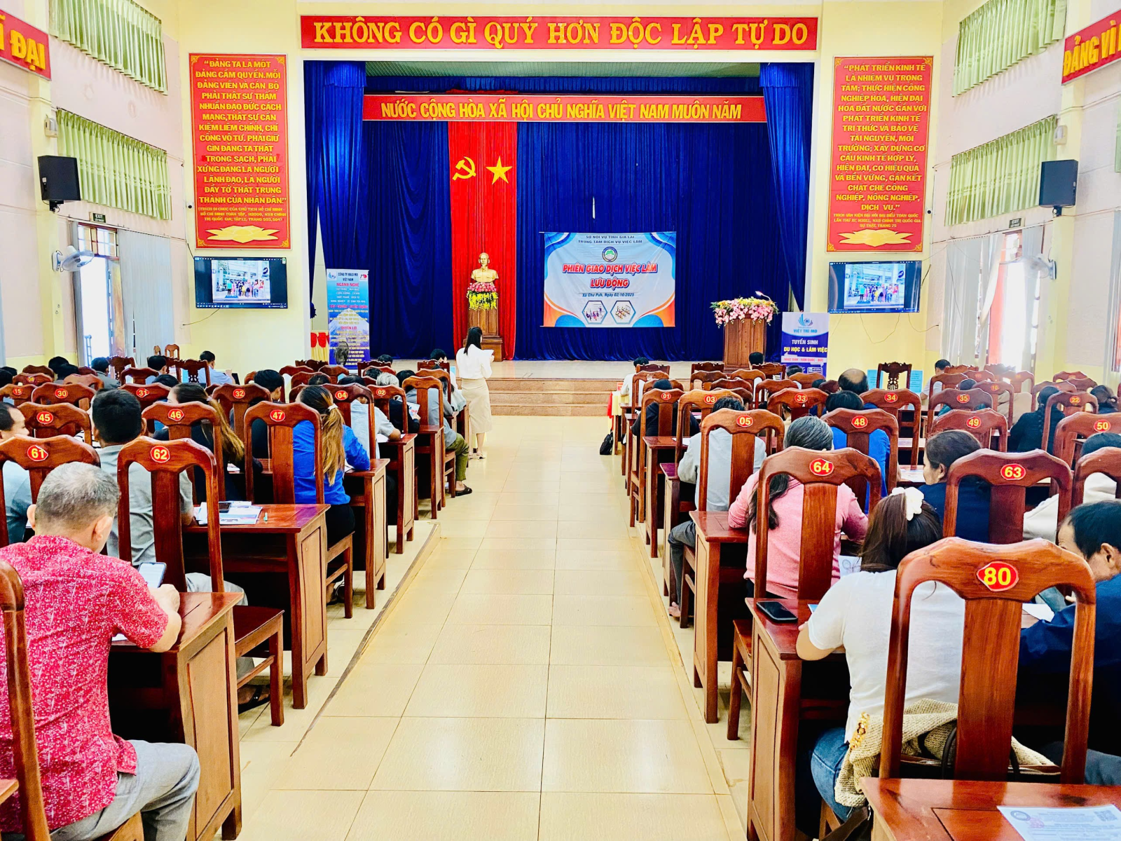 Sáng ngày 02/10/2025, tại hội trường 10/12, UBND xã Chư Pưh đã phối hợp với Trung tâm Dịch vụ việc làm tỉnh Gia lai tổ chức phiên giao dịch việc làm lưu động năm 2025. Đến dự có các đồng chí: Trần Đình Thi-Phó Bí thư Thường trực Đảng uỷ xã; Lê Đình Sơn-UVBTVĐU, Phó Chủ tịch UBND xã; Lãnh đạo phòng Văn hoá-Xã hội xã cùng đông đảo đoàn viên, hội viên và người lao động trên địa bàn xã.