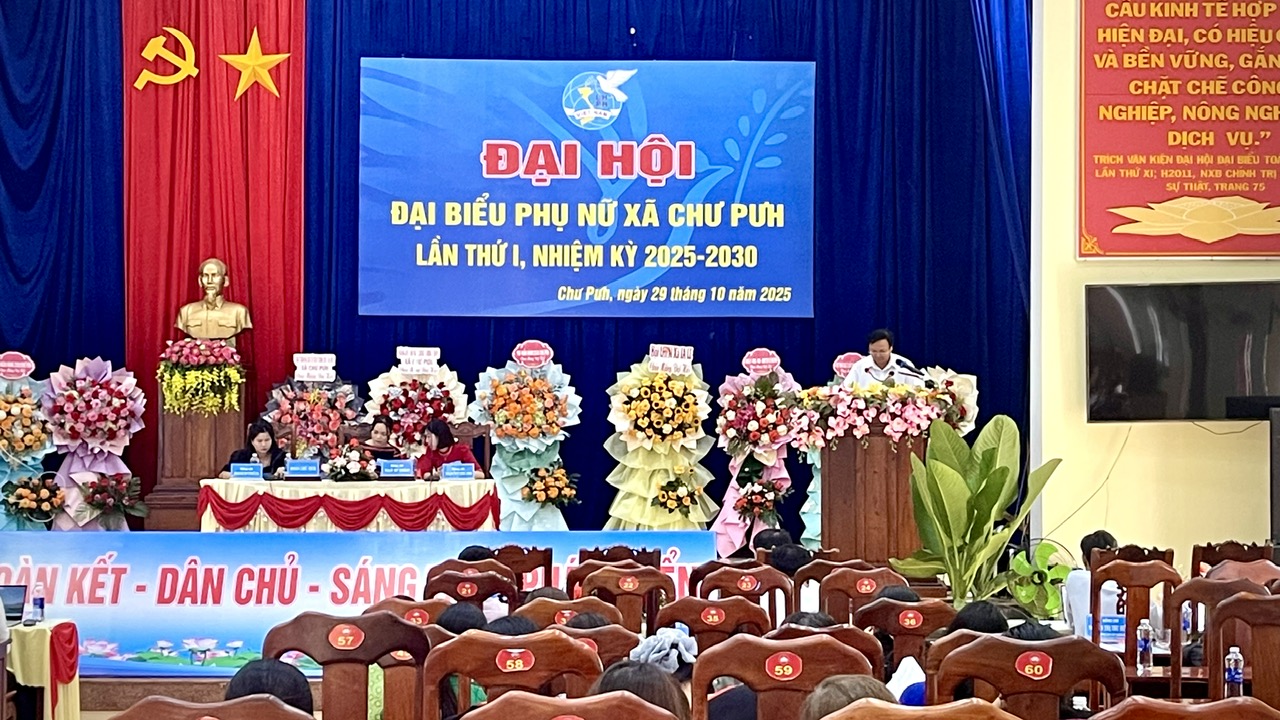 Sáng ngày 29/10/2025, tại hội trường 10/12, Hội LHPN xã Chư Pưh đã long trọng tổ chức Đại hội đại biểu Hội Liên hiệp Phụ nữ lần thứ I, nhiệm kỳ 2025–2030. Tham dự Đại hội, có đồng chí Nguyễn Huy Châu – Bí thư Đảng ủy, Chủ tịch HĐND xã; Nguyễn Văn Hạ– UVBTVĐU–Phó CT HĐND xã; Ksor H’ Huen-UVBTVĐU, Chủ tịch UMTTQVN xã, Lê Đình Sơn –UVBTVĐ, Phó Chủ tịch UBND xã; các đồng chí nguyên Chủ tịch Hội LHPN xã qua các thời kỳ; đại diện lãnh đạo các tổ chức chính trị - xã hội và sự có mặt của 100 đại biểu chính thức đại diện cho 5.711 hội viên phụ nữ, tiêu biểu cho trí tuệ, bản lĩnh và tâm huyết của các hội viên phụ nữ xã.